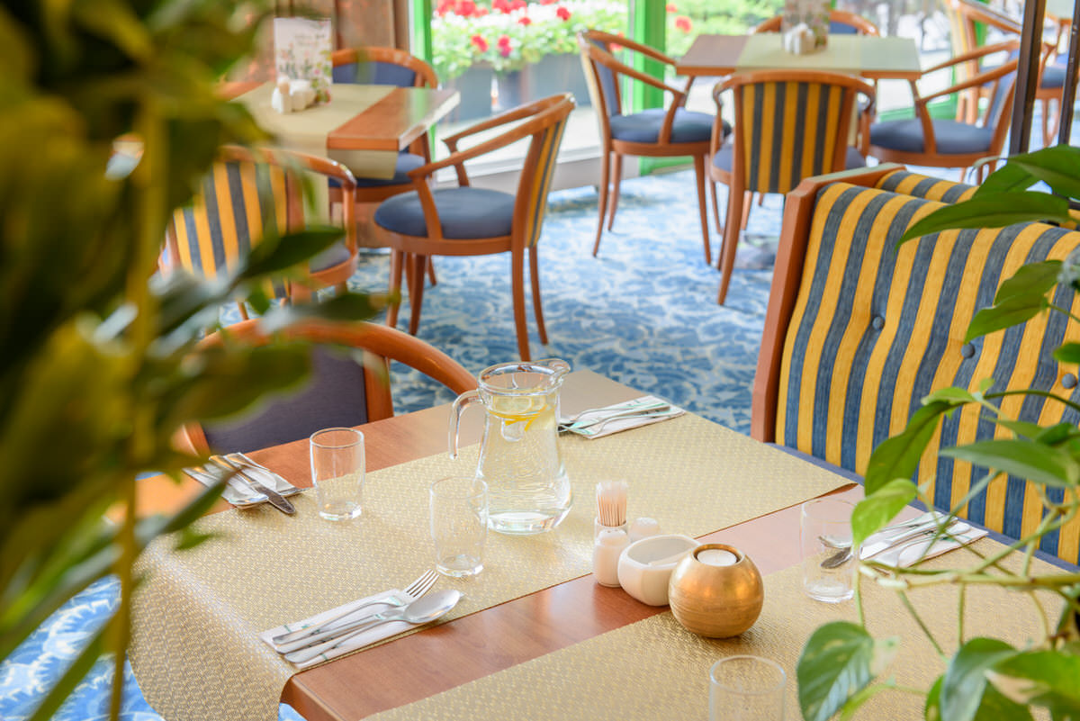 Resturacja hotelowa dzieli się trzy części z czego wykonałem zdjęcia części głównej z barem, oraz tarasu przylegającego do sali bankietowej. Salę bankietową przentuję na wirtualnym spacerze pod tym linkiem.